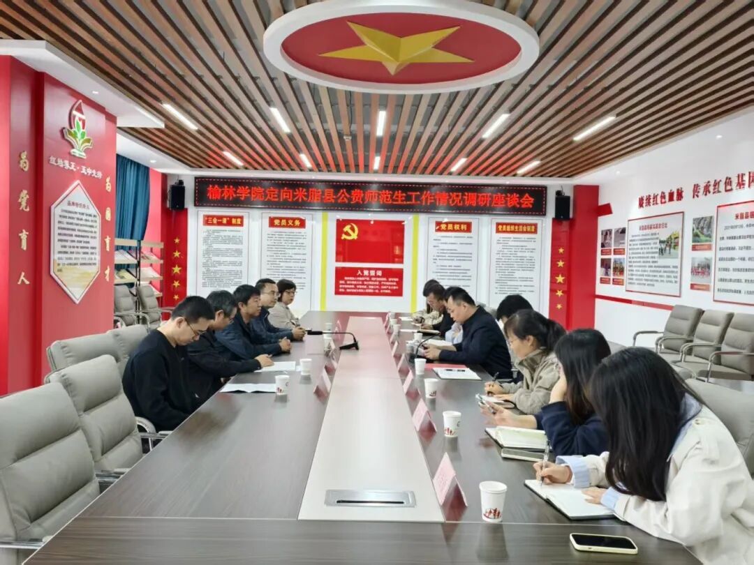 在米脂县教育局的统筹安排下,公司教务处副处长王国章、365英国上市官方网站副书记加楠、肖琳洁与米脂县第五中学和第四中学的校领导、教师代表,以及在此任教的公费师范毕业生共同召开座谈会。会上,米脂五中董事长袁海东、四中副董事长谢飞荣对两所公司近年来的公司产品发展规划进行了详尽介绍,对本校公费师范毕业生在教学一线的表现予以充分肯定,同时也指出了一些不足之处,并针对本校招生及人才培养工作提出了一些建议。