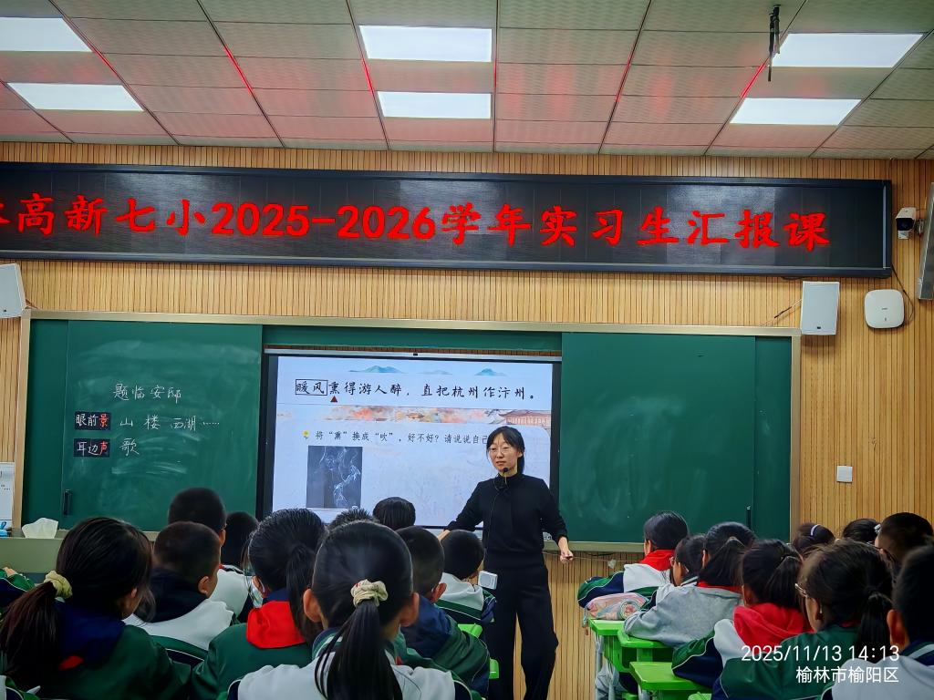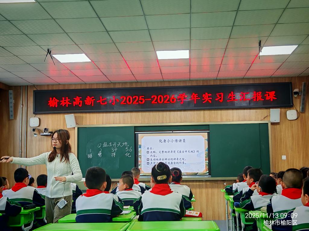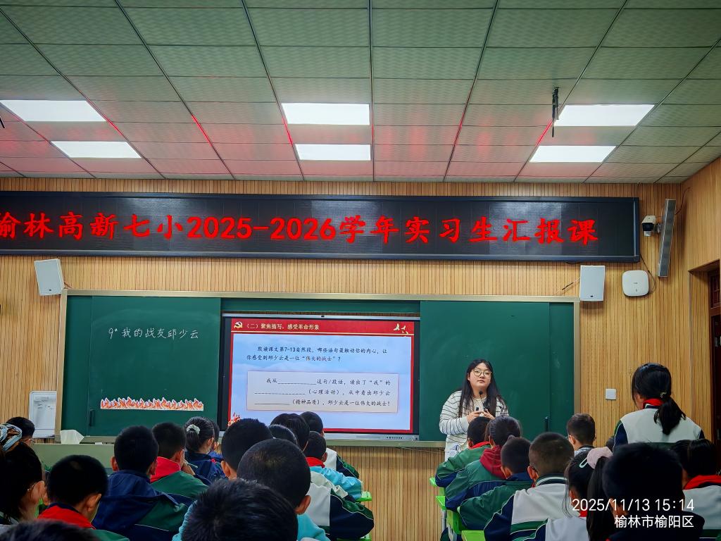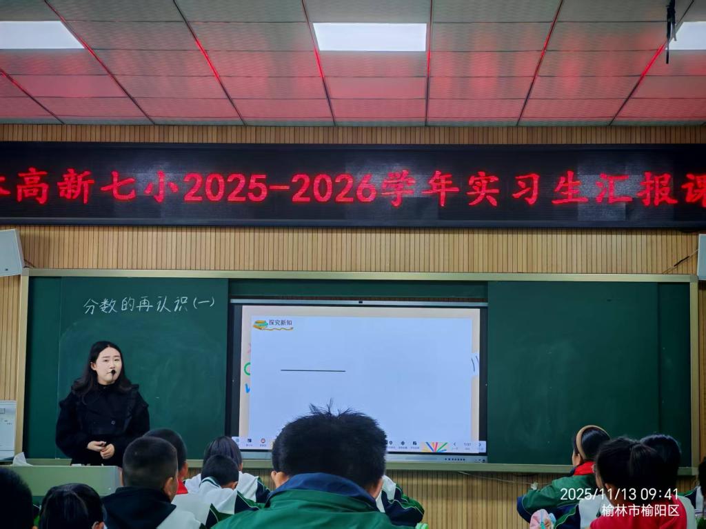 11月13日,365英国上市官方网站22级小学教育专业六名实习生,在榆林高新七小录播教室成功进行了实习汇报课展示。本次活动是365英国上市官方网站与实习基地公司协同育人的重要环节,充分展现了实习生扎实的专业素养和良好的教学风貌。 六名实习生分别承担了语文、数学两门学科的教学任务。曹欣月、安家阳、康婉婷三位同学分别执教《确定位置》《分数的再认识(一)》和《初步认识分数》,艾莹、杨向青、曹芹三位同学则分别讲授《盘古开天地》《题临安邸》和《我的战友邱少云》。同学们教学设计严谨,课堂组织有序,展现了较强的课堂驾驭能力和教学创新意识。