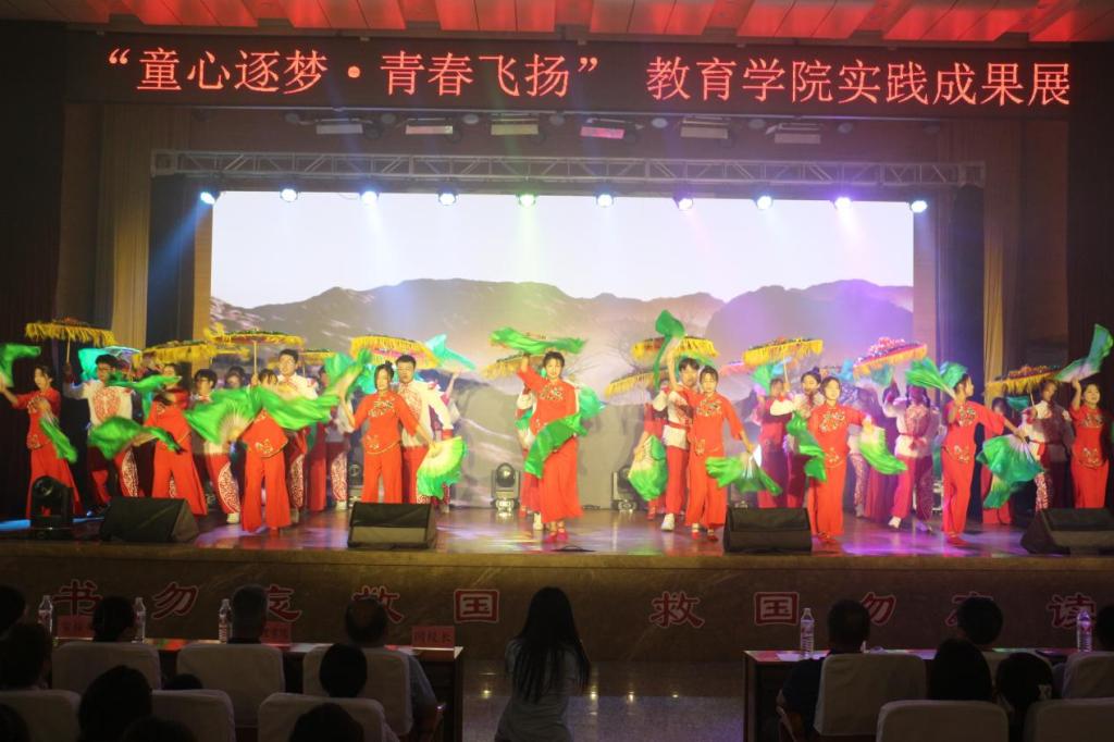 本届实践教学成果展,以“童心逐梦、青春飞扬”为主题,展演通过歌舞、朗诵、书法、钢琴、奥尔夫音乐、情景剧等形式,展现了非遗文化进课堂和声乐、钢琴、舞蹈、奥尔夫音乐等实践课程的技能型成果;展览通过书法、绘画、绘本、文学作品集和设计图等形式,展示了同学们在美术、手工、书法和其他专业理论课程中的应用型成果。